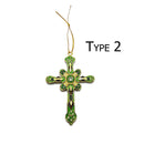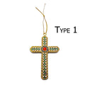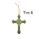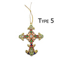 Cloisonne Christmas Tree Ornament Crucifix Cross 3.75 x 4" Wide Sold Per Piece
