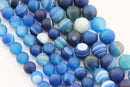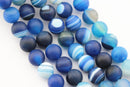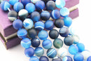 2.0mm Hole Blue Stripe Agate Matte Round Beads 8mm 10mm 15.5" Strand