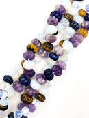 Graduated Mixed Gemstone Carved Pumpkin Beads Size 5x8mm-10x14mm 18'' Strand