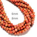 Orange Sea Sediment Jasper Smooth Round Beads Size 6mm 8mm 10mm 15.5'' Strand