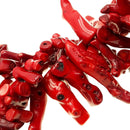 Red Bamboo Coral Branch Sticks Points Beads Approx 20mm 40mm 60mm 15.5"Strand