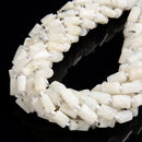 White Moonstone with Black Specks Faceted Tube Beads Size 7-8x12-13mm 15.5''Strd