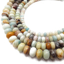 Multi-Color Amazonite Smooth Rondelle Beads 4x6mm 5x8mm 6x10mm 8x12mm 15.5" Strand