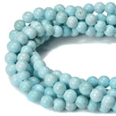 2.0mm Large Hole Light Blue Turquoise Smooth Round Size 6mm 8mm 15.5'' Strand