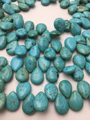 Blue Turquoise Smooth Flat Teardrop Shape Beads 8x10mm Approx 15.5" Strand