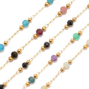 3mm Faceted Round Beads Multi Gemstone Chain Sold One Meter Per Bag
