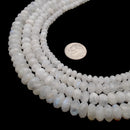 AA White Moonstone Faceted Rondelle Beads 3x5mm 4x7mm 5x8mm 5x9mm 15.5" Strand