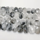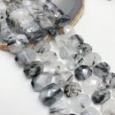 Black Tourmalinated Quartz Rectangle Faceted Octagon Beads 10x14mm 15.5" Strand