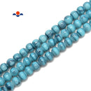 Light Blue Striped Glass Smooth Round Beads Size 6mm 8mm 10mm 15.5" Strand