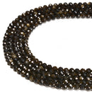 Gold Sheen Obsidian Faceted Round Beads Size 2mm 3mm 4mm 15.5'' Strand