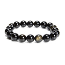Gold Sheen Obsidian Smooth Round Beads Bracelet 6mm to 10mm 7.5''Length 3PCS/Set