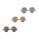 Alloy Silver/Gold Plated Rhinestone Skull Connector Charm 17x19mm Sold Per Pair