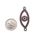 Evil Eye Charm Black Plated Copper with Micro Pave Red / Green Zircon 15x30mm