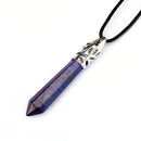 Lapis Lazuli Pendulum Healing Pendant Point 10x65mm Silver Leather Cord