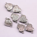 Silver Micro Pave Clear Zircon Heart Connector Charm Size 12x12mm Sold Per Piece