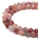2.0mm Large Hole Strawberry Quartz Faceted Star Cut Beads Size 8mm 8'' Strand