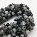 Black Tourmalinated Quartz Faceted Round Beads 10mm 15.5" Strand