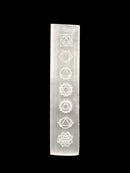 Natural Selenite Crystal 7 Chakra Symbols Charging Slab Size 1.5x8" Inches