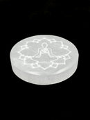 Natural Selenite Crystal Round Circle Charging Plate Buddha 2.35" Inches