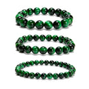 Green Tiger Eye Smooth Round Beaded Bracelet 6mm 8mm 10mm 7.5'' Length 3 PCS/Set