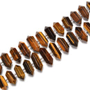 Yellow Tiger Eye Graduated Center Drill Faceted Points Size 25-35mm 15.5'' Str